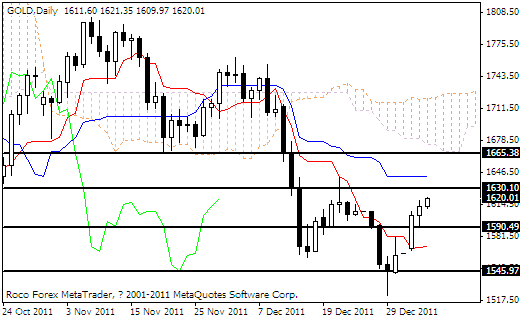 周三现货黄金最终小幅收高,收报1,612.80美元/盎司,上涨8.30美元/盎司,涨幅0.52%,最高触及1,618.40美元/盎司,最低下探至1,592.24美元/盎司。昨日金价并未受到美元指数大幅上涨而下跌,而是在受到欧盟政府就伊朗石油进口禁令达成初步共识,跟随油价拉升而止跌企稳并小幅收高。美国商务部宣布,11月的工厂订单环比增1.8%。据彭博社的调查,经济学家对此的平均预期为环比增2.0%。10月的工厂订单环比降0.4%。最近公布的一系列经济数据对市场都感到振奋,因为它们连续性的表明自从9月份以来美国经济状况持续好转,美国本土数据的利好直接推动美股持续横盘在12000点,而美元重返80上方,忽视了欧债危机对市场的影响。金价并没随美元大幅拉升而下跌,尾盘再度回升重返千六上方。本周经济数据方面的重头戏将是本周五的非农就业数据。
