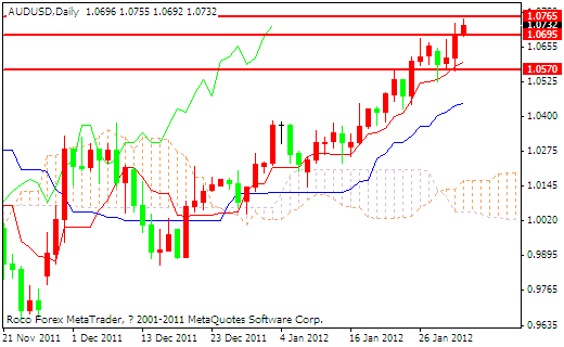 欧元区利好消息频频显现,消息称希腊政府与私人部门债权人就债务减记接近达成协议,市场风险偏好情绪继续得到支撑,欧美股市维持涨势,风险货币大幅上涨;不过美国公布的1月ADP就业人数不及预期,ISM制造业采购经理人指数不佳,非美货币回吐了部分涨幅。欧元和增长敏感型货币兑美元周三走高,主要受新一批表现良好的经济数据的推动。欧洲制造业采购经理人指数数据普遍好于预期,降低市场对欧洲增长前景的担忧。同时葡萄牙周三顺利发行了15亿欧元国债,达到计划发行规模12.5-15亿欧元的上限,且借贷成本下滑,也支撑了市场情绪持稳。
