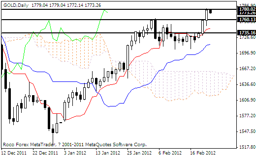 技术分析:黄金昨日延续上涨势头并收于一根中阳线,多方力量在穿破1760后在1780的位置获得了新的阻力,今天亚洲盘在1780的压制下k线走低,目前形成了一根小阴线,总体上结束了此前盘整的态势,从新回到了上升的趋势当中,日内的阻力和支撑分别为1780和1760两线。