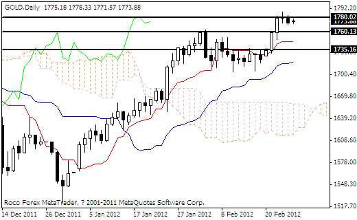 技术分析:黄金周五收于一根小阴线,多方在1780的位置再次遭遇压制而走低,今天亚洲盘延续下跌势头,目前形成了一根小阴线,交投较为清谈,上方1780对多方力量保有着阻力的作用,如果能够突破该线位置的压制将会打开更大的上升空间,下方的支撑位置为1760一线。