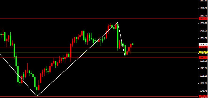 如图 上周最跌到1662,在1662一波回调到1700