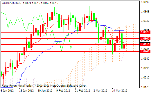 技术分析:澳元兑美元昨日收于一根大阴线,盘面的最高跌幅为150个基点,空方昨日不断打压,一举穿破了1.0560和1.0510的支撑,今天早盘空头回补,目前汇价收于一根中阳线,同时k线深受云层的包围,日内如果多方突破1.0510的阻力可以选择多头入场,第一目标看1.0560,下方的支撑位置为1.0445一线。