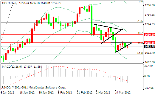 昨日伯南克在乔治华盛顿大学的讲话中依然没有提及未来宽松货币政策,像此前一样表现出对于美国经济复苏缓慢有些沮丧,对QE3决口不提支撑了美元指数小幅的上涨,并且在同日,奥巴马所提名的两名美联储理事却表现出了其鹰派立场,声明在美国经济复苏稳定的前提下美联储会提前加息,同样支撑了美元,打压了非美及金价。昨日欧美基本面清淡,都在预期之内,然而中国却意外的成为了市场的焦点,澳洲矿业巨头必和必拓警告称,中国的钢铁需求正在停止增长,从侧面也印证了中国经济放缓的事实,此前中国曾下调过GDP增长预期,中国目前作为世界第二大经济体,其经济放缓会影响全球经济,投资者普遍对此产生了担忧,打压了风险偏好情绪,资金纷纷逃离寻求避险,使得盘中非美及金价大幅跳水。稍晚时候,希腊传来利好,已获得第一批救助款项,令风险偏好情绪又小幅回升,支撑了尾盘非美货币及金价的反弹。黄金中长期来看支撑因素依然存在,全球逐渐宽松的货币环境,随时出现变数的中东地缘政治问题以及全球经济明显进入下行通道等都将长期支撑金价;但短期来看,黄金作为风险资产运动,当市场出现打压风险偏好情绪事件时,黄金必会跟随下跌,从最近的地缘政治问题来看也是趋于缓和,包括印度方面此前提高了黄金进口关税也会影响黄金的需求,那么短期来看黄金暂时不具备上冲的条件。技术面也反映出,此波下跌并未结束,金价仍处弱势,很有可能在近期试探前期低点位置。今日关注英国央行货币会议纪要,此前虽维持利率及资产购买规模不变,但请关注纪要中是否有官员支持未来进一步宽松的政策,若有对未来进一步宽松做出暗示,会支撑黄金的价格,反之则有打压金价的效果。