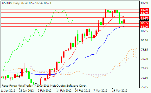 技术分析:美元兑日元上周五收于一根小阴线并且伴随着较长的上下影线部位,从上周3至上周五,美元兑日元接连下挫,形成了今年最大的回调,今天早盘k线小幅上扬并突破了下降趋势线,所以总体上仍然以逢低做多为主,上方的阻力位分别为82.90和83.40.