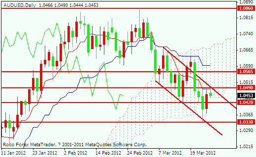 技术分析:澳元兑美元周五强势反弹,收于一根大阳线并且汇价突破1.0420的阻力,但整体仍然处于在了下降通道当中,今天早盘k线触及到下降通道上轨和1.0490的交界处时遭遇到明显的阻力而走低,建议投资者顺势而为,中期以做空澳元为主,下方的支撑位置为1.0420一线。