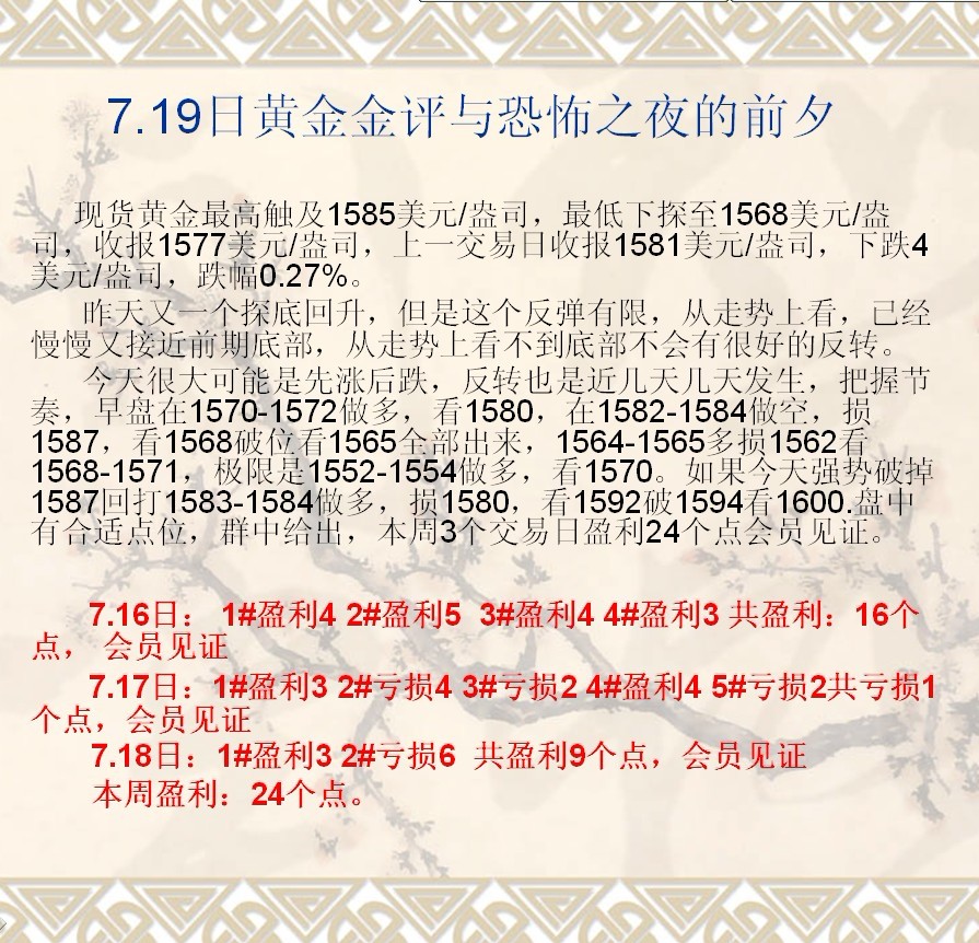 7.19日黄金金评与恐怖之夜的前夕