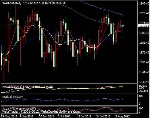 从短线四小时图看,金价自1584反弹,昨日明显出现上涨放缓,短线维持在1615下方整理,但均线仍处于多头排列向上发散,金价下方支撑较多。MACD快慢线上破0轴呈多头,红柱虽然量不大,但仍处于多头。KD高位死叉,但明显已出现钝化。金价短线内仍有上浮空间,建议低位渣单。
