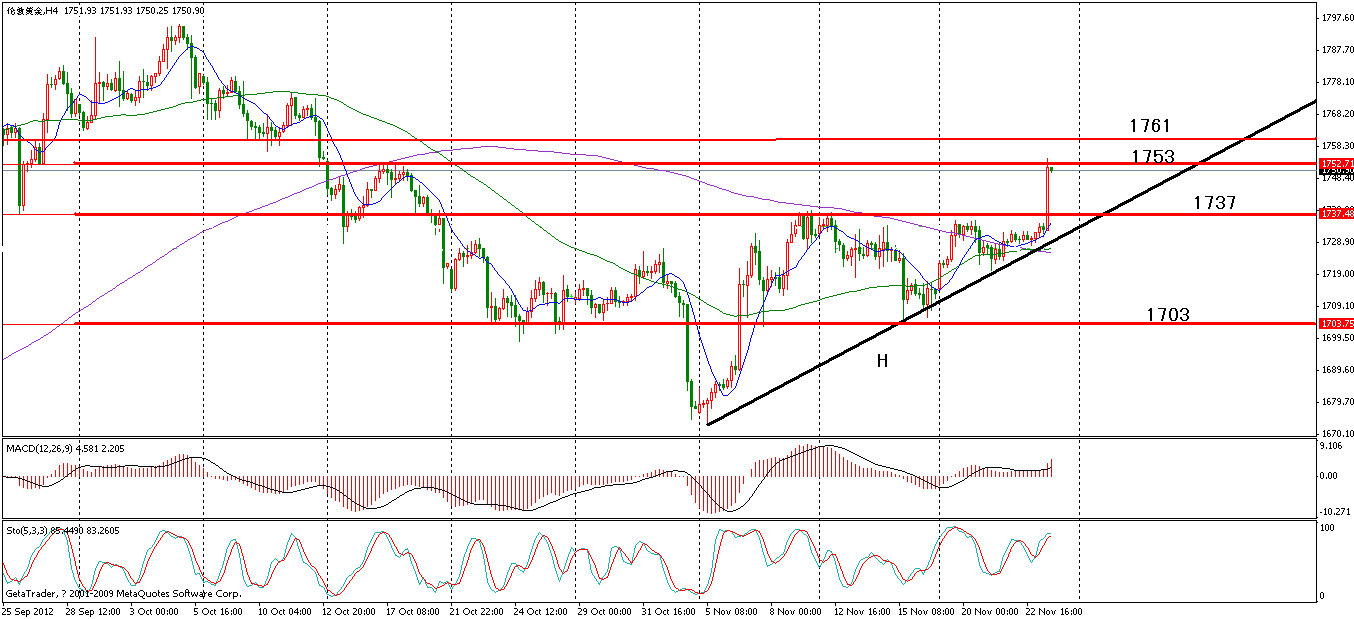今日交易方面,价格到达1706一线多,止损5块,利润10-15块;若被止损,看到价格报1701,则反手追空,止损5块,利润1695。北京时间11月29日12时41分,黄金报1720美元/盎司,若价格在美盘开盘时未能上破1723一线,则空,止损4块,利润10-12块,反之价格今天再次创新高,今天价格在幸能回到1719一线时,做多,止损4块,利润1728。