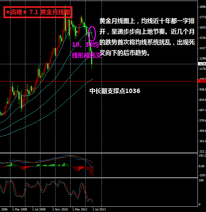2013年以来,黄金始终受到市场巨大压力紧逼。先是全球股市在美股日股引领下,步步走高(中国A股除外)。导致资金大量流出由黄金所代表的安全资产,涌入股市。后来因市场持续担忧美国联邦储备委员会(Fed)即将退出刺激措施,待伯南克确定美联储退出每月850亿美元债券购买计划的时间表后,多头几乎放弃抵抗。市场上投资者没人敢和美联储对着干,黄金就此出现上世纪七十年代以来的最大季度跌幅。