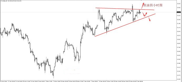 消息面解析:在欧佩克会议减产确立后油价短线冲高55美元时候,包括美国在内受到减产豁免的利比亚、尼日利亚这些主要生产轻质油的国家见见市场,油价一度在高位震荡而此时美国页岩油也介入市场而俄罗斯巨头方面的重质量油生产的减缓引发油市的不均衡。而就目前看来减产的进度并没有达到市场的预期,早在上周末程锐周评里也说了如果欧佩克会议后产油大国比如沙特减产执行力不到位,油价可能转头看向52美元,而从54-52美元的鸿沟昨天一天就达到了。