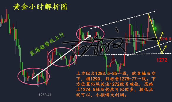周三ADP,利空,这是否会主导周五的非农呢?还需要确认,确认两个点:1,确认周四晚间的初请失业金是否也是空。2,确认周五日线运行的节奏,是否和周三类似,如果相反,那么需要考虑整体日线强弱定性。今日方面,继续看震荡吧。1,区间没有突破,明日是非农,今日突破的概率不大。2,日线节奏,也没有连阳的动能,即便有,突破后也没有连续。3,早间上升,也并非好事。因此,操作上,昨日在1277一线空,1273止盈。1274.5一线多单,在1281-2出局了。上方阻力1283.5-85一线,欧盘触及空下,损1290,目标看1278-77一线。江柏文朋友圈jbw135将会不定时推送免费操作建议。下方位置仍然关注1272能否破位,思路上1274.5触及仍然可以做多,损低点就可以,小损博大利润。