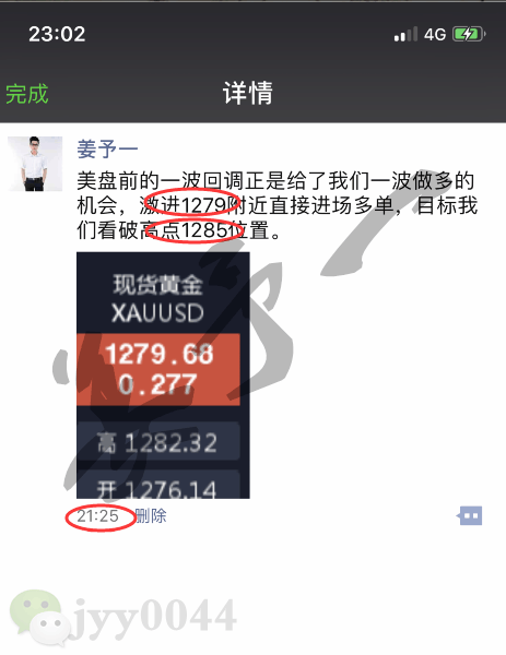 黄金从4小时的形态看,昨日的行情开盘在1277.1的位置后行情直接拉升4小时行程大阳线后行情开始震荡上行过程,美盘开始时段行情回踩1278.5附近后受到基本面避险情绪推升,行情强势拉升并一度破位本轮回落vx/jyy0044的位置最高触及到了1287的位置后行情开始回落,4小时形成冲高回落信号后行情最低给到了1280.1的位置后整理,最终日线收线在了1281.2的位置后行情以一根上影线很长的中阳线收尾,而这样的形态收尾后,今日的行情如果先拉升给出1285附近空,止损1289下方目标看1277和1274附近.下方给出1274附近准备多。