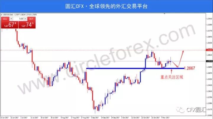在加拿大方面的CPI数据都符合预期的情况下,美国房屋数据的强劲为美元提供了支持,从而推动美元兑加元走高,随后冲高至1.2820附近承压回落。目前市场对于加拿大央行方面短期内没有任何加息预期,这对于加元的短期走势不利,而美元走势则更多的取决于美国税改的进展。在目前市场不确定因素的影响下,美加仍有可能宽幅震荡调整。