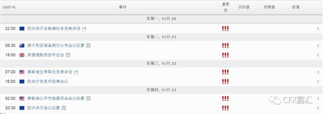 美国税改方面的进展继续牵动市场神经。美国众议院上周四通过了全面减税方案,但未来参议院依旧充满不确定性,同时“通俄门”风波再起,打压美元持续回落。尽管美国CPI和零售销售数据双双高于市场预期,加强了美联储12月升息的依据,却不足以缓解围绕税改等问题的忧虑情绪。