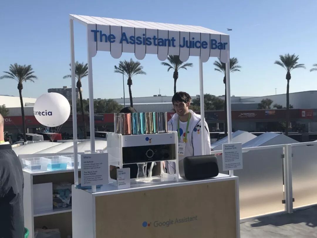 不止拉拢大厂商支援Google Assistant,谷歌(GOOG)还设计了一套“GoogleAssistant 果汁自助吧”。它为前来参观的各位观众提供特调的柠檬汁、蓝莓汁、苹果汁等8种果汁。