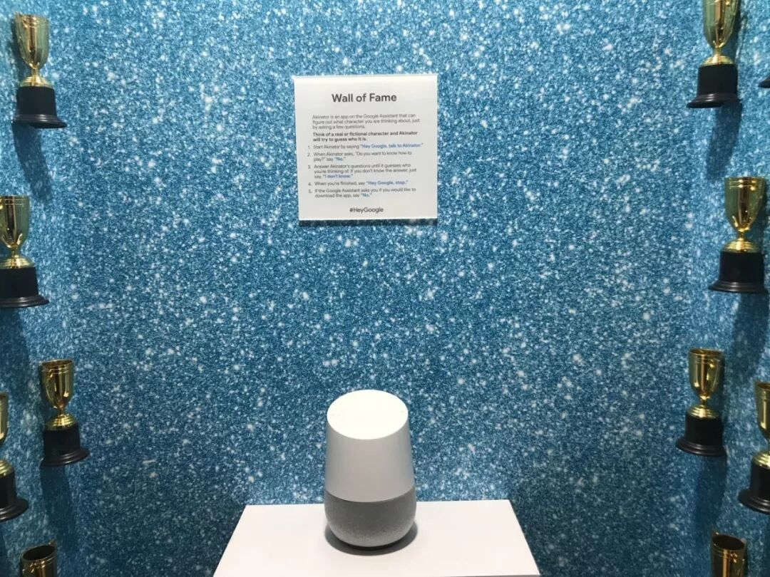 谷歌(GOOG)在电话亭里摆放了智慧音响,和消费者玩“猜猜你在想哪个角色”,与会的台湾科技媒体《数位时代》被HeyGoogle问了10至15题后真的被Google猜中了答案——米老鼠。所以,以后再也不用担心要费心地猜女朋友的心思了。