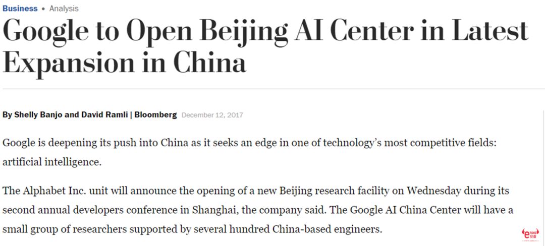 方兴未艾,2017年12月谷歌(GOOG)正式宣布在北京建立面向中国的AI团队。唯有学历为博士并在大学任教的精英才能进入该团队。外界都认为这是谷歌(GOOG)重回中国的强烈信号,这也是“谷歌(GOOG)欲回中国就必须靠AI”共识的“出典”吧。