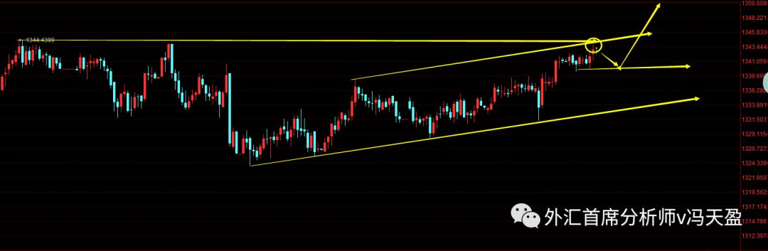 黄金目前位置处于小时级别通道的上沿,这个位置追多并不合适,反而很容易回落,关注欧盘是否能够上破1345这个点,如果能够突破,回撤继续做多