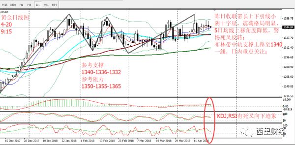 显示金价短线在1350位置遭遇强阻力,好在金价仍运行在关键支撑位55日均线1335上方附近,上方阻力位在1350,随后强阻是前期高点1365。日内下行支撑位重点关注1336。若能维持在此位上方,金价料将进一步走高,反之若跌破此位,金价将会进一步走低。日内思路维持破位后跟进思路;