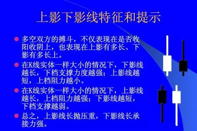 K线的特征:1、K线所包含的信息是及其丰富的。2、就以单根K线而言,一般上影线和阴线的实体表示原油价格的下压力量,下阴线和阳线实体则原油价格的上升力量。2、上影线和阴线实体较长则说明原油价格的下跌动能比较大,下影线和阳线实体较长则说明原油价格的扬长动力比较强。