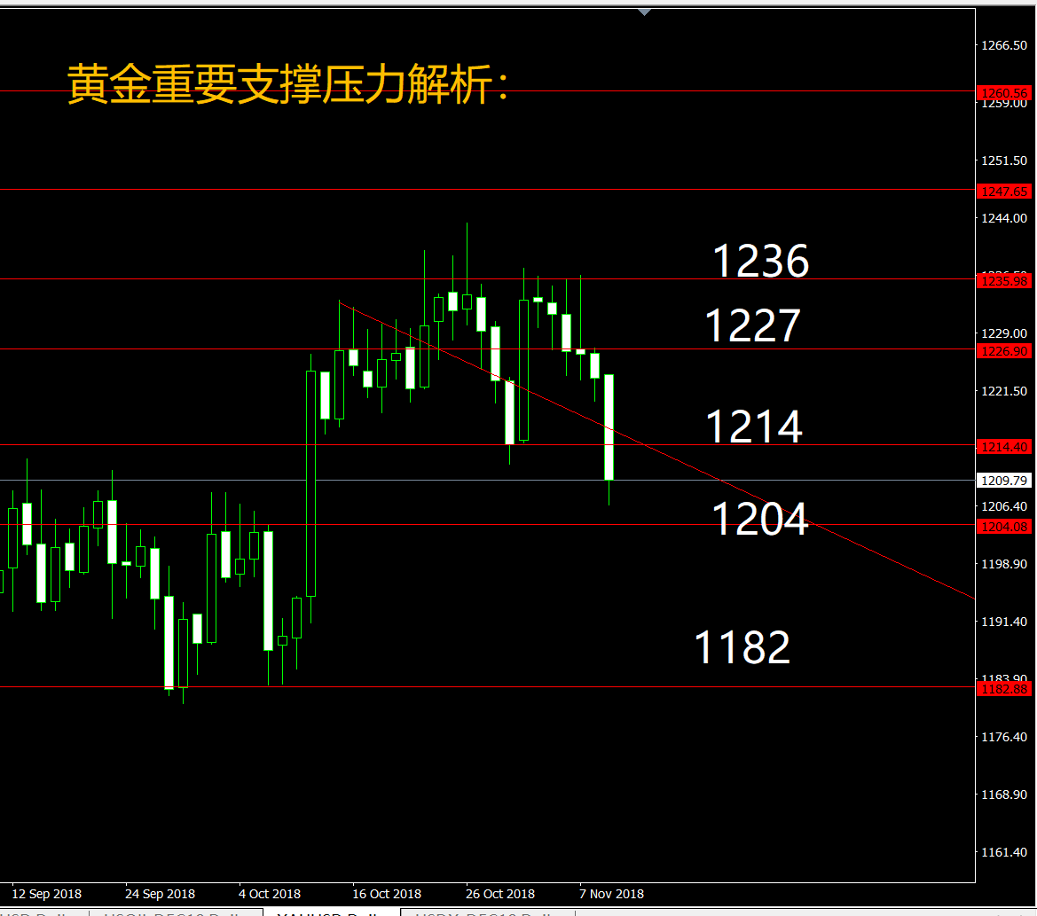 本周恰逢美中期选举和美制裁伊朗!对美元也是一个提振,相反是打压了黄金,下周操作思路,1205一线位置多,止损设1199附近位置,一个中线的布局。若是下破,可到触及1183届时转换布局,做单分阶段,思路更清晰!