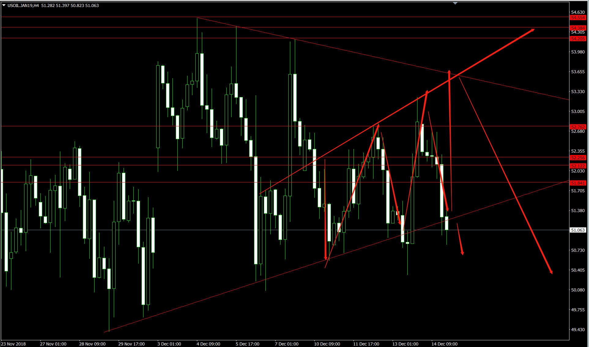 原油方面,目前在51美元附近位置,从走势来看,原油已经跌破了趋势线,打破了3角震荡,我们应该换一种逻辑思考。事实也证明在想要50美元关口稳住形成原油变盘窗口的可能性也是在减小,下周初原油还是会试探50美元关注,跌破则是看向45美元,稳住支撑才能开启新的涨势!