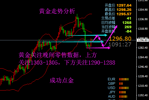 2、成功建议若有上周低位遗留多单的,一概先于1295-1300之间部分减仓,剩余持单改保本止损,波段目标看1305、1310预期;