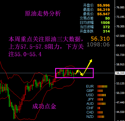 1、成功建议周初回撤55.40-55.60附近做多,损55.0,目标56.60-57.10,突破再看57.5-57.8;