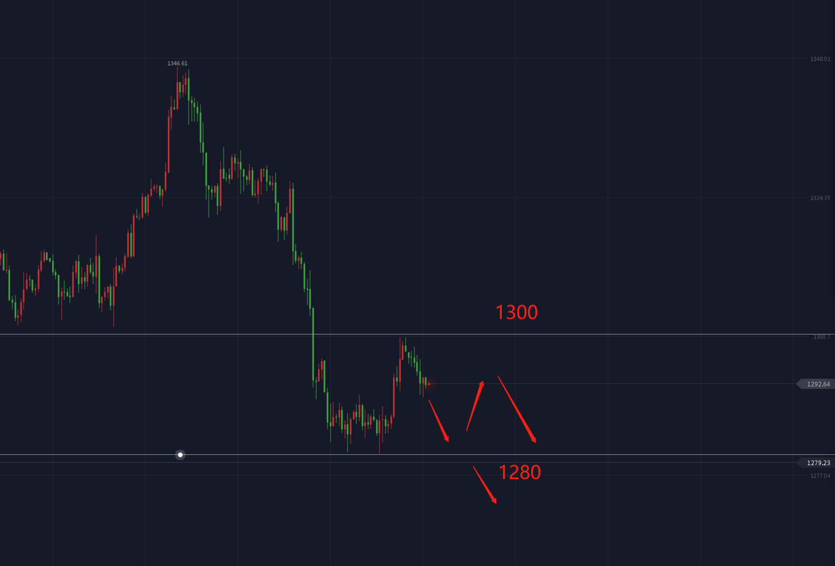 昨天有一个投资者朋友问我,黄金下跌的依据是什么,非农对黄金的影响并不大,而且上冲1300的力度稍弱,没有能突破*1302,并且站稳在这个位置的上方,那么本周是要看跌的,黄金开盘目前在1292附近位置,今天还是有继续有跌的空间,操作上,反弹1295一线可以延续空头思路,然后下方1288支撑能够触及并打破也能看空!