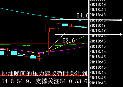 1、原油54.8-54.6附近做空,止损0.4个点,目标看54.0-53.8附近;