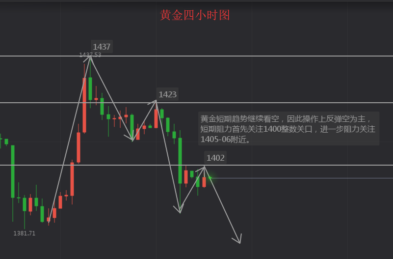 1、黄金1400-1402附件做空,止损4个点,目标看1386-1380区域;