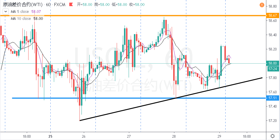 原油昨日走势也较为符合预期,继续震荡运行,预计在欧佩克大会前此震荡走势将保持,日内操作上稳健可继续以高抛低吸思路应对。