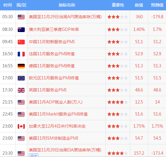 2019年12月04日经济数据一览