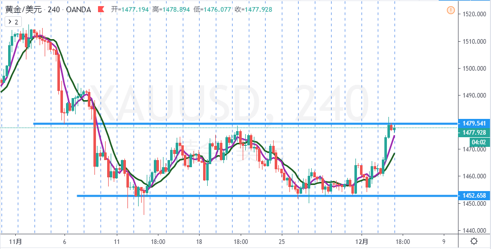 黄金昨日盘中走势较为符合预期,回踩早盘给到的进多点位后直接快速拉升,突破1470一线的压力位后加速上行,最高一度涨至1482一线,几乎吞没了11份以来的所有跌幅,随着短期避险情绪高涨,金价日内或有进一步拉升空间,操作上稳健应当以低多为主。