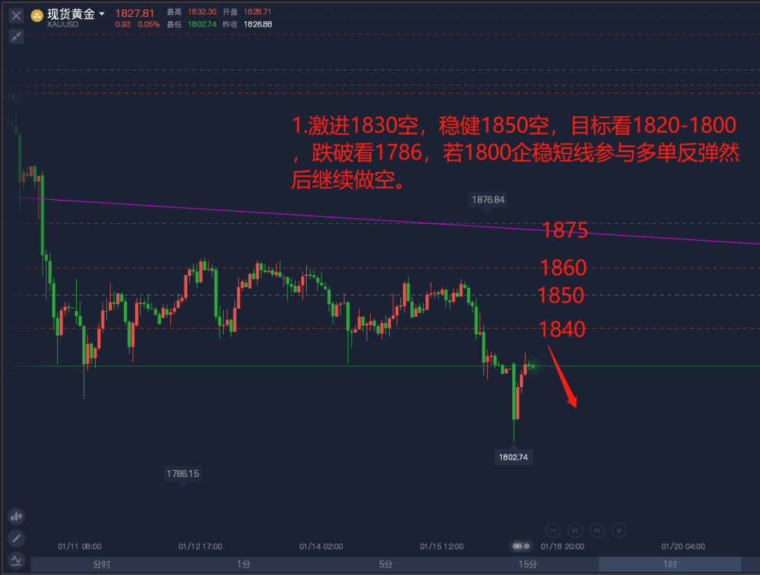 技术面上,目前日线大阴破1830,今日开盘最低下跌至1802.7,然后再次反弹1830附近,因此激进1830附近空,稳健等待1840-50空,目标1820-1810-1800,跌破1800继续看1786,若企稳1800短线参与多单。