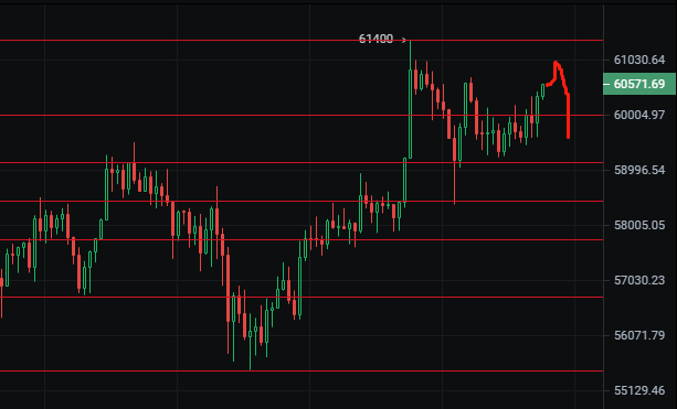 比特币从现在的走势上来看行情一定进入震荡行情,而震荡的方向也是向上的,此时区间进行上移,唐盛撸币预计行情短期不会马上突破,而是高位震荡后会向下发展;从日线上我们可以看,行情多次下跌试探下方支撑位置中轨附近,行情一直没有突破下跌,而是在中轨上方进行震荡,对于这样的行情,说明短期下跌的空间不大,而是会选择一个震荡向上空间,而目前高点位附近在60800-61000附近,而下方支撑位于59000-59100附近;行情先涨后跌的趋势,那么操作上先多后空即可;需要小币或是合约行情的朋友可以关注公众号唐盛撸币咨询本人了解;4月12日比特币操作策略:1、比特币价格触及60800-60600附近空,止损61500,目标看59000-59300附近;2、BTC价格触及59200-59000附近多,止损58600,目标看60500-60800附近;