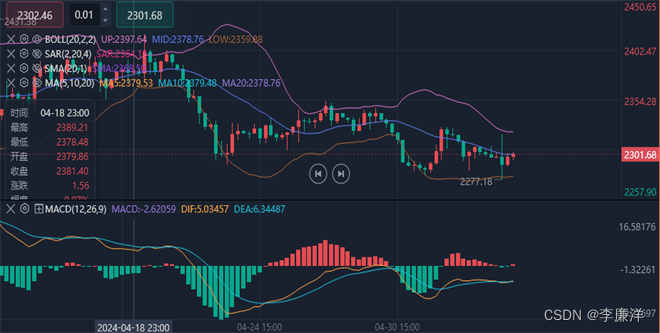 黄金实时行情分析:今天是周末在这里希望大家周末愉快,昨天受非农影响美盘2301直跳2320一线后然后回踩至2304,最后甚至下跌至2277,虽然有所反弹,但是最后走势还是以2300附近为中心,没有出现大幅度上涨,这样的趋势我们可以认为黄金目前下跌乏力,根据周线布林线来看本周黄金走势都是以中上轨运行,在周线盘面分析MACD指标红色动能柱没有缩量迹象,但是在4小时盘面中黄金走势以布林线中下轨为震荡中心,MACD指标红色动能柱也开始缩减,从以上盘面分析来看下周一李廉洋认为以4小时布林线上轨位2323为阻力点位和下轨2280为支撑点位。