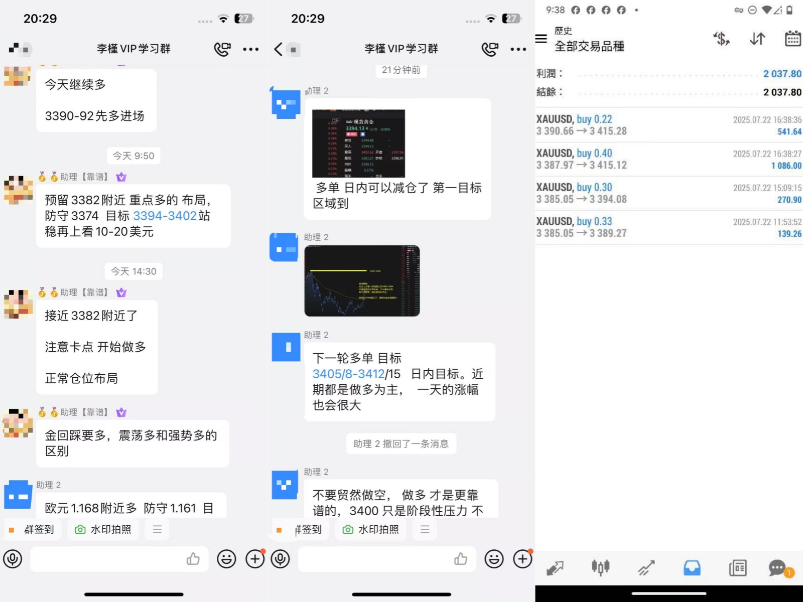 昨日早盘公开回落3382附近多,行情回落3383直接拉升,我们实战和公开都有实时同步多