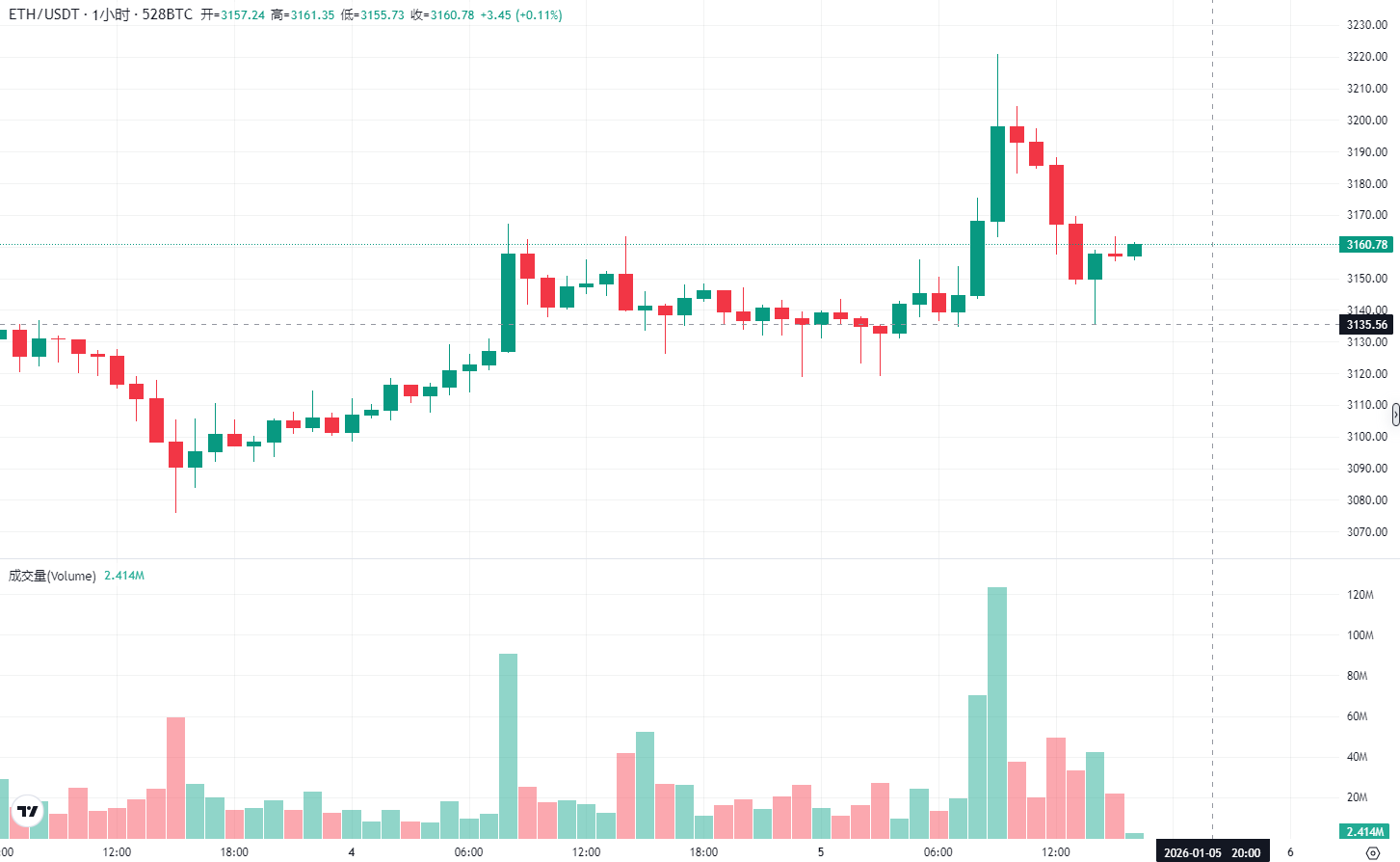 新年开年的加密市场没少给交易者 “心跳感”:今日上午比特币、以太坊一度集体冲高,把行情热度拉满,没过多久又快速回落,最终回到当前的 92577(比特币)、3160(以太坊)价位附近。