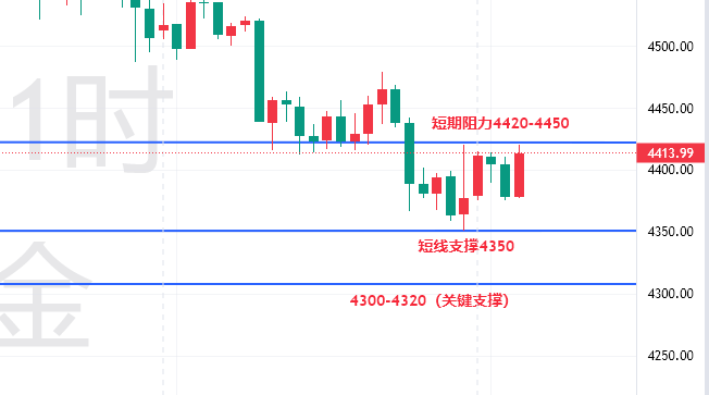 空单思路:反弹至4420-4440美元区域遇阻可轻仓试空,目标4370-4350美元,破位持有看4320美元附近,止损设在4450美元上方。